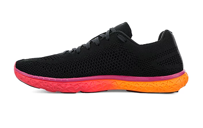 Places your heel and forefoot the same distance from the ground to encourage proper, low-impact form throughout your run.