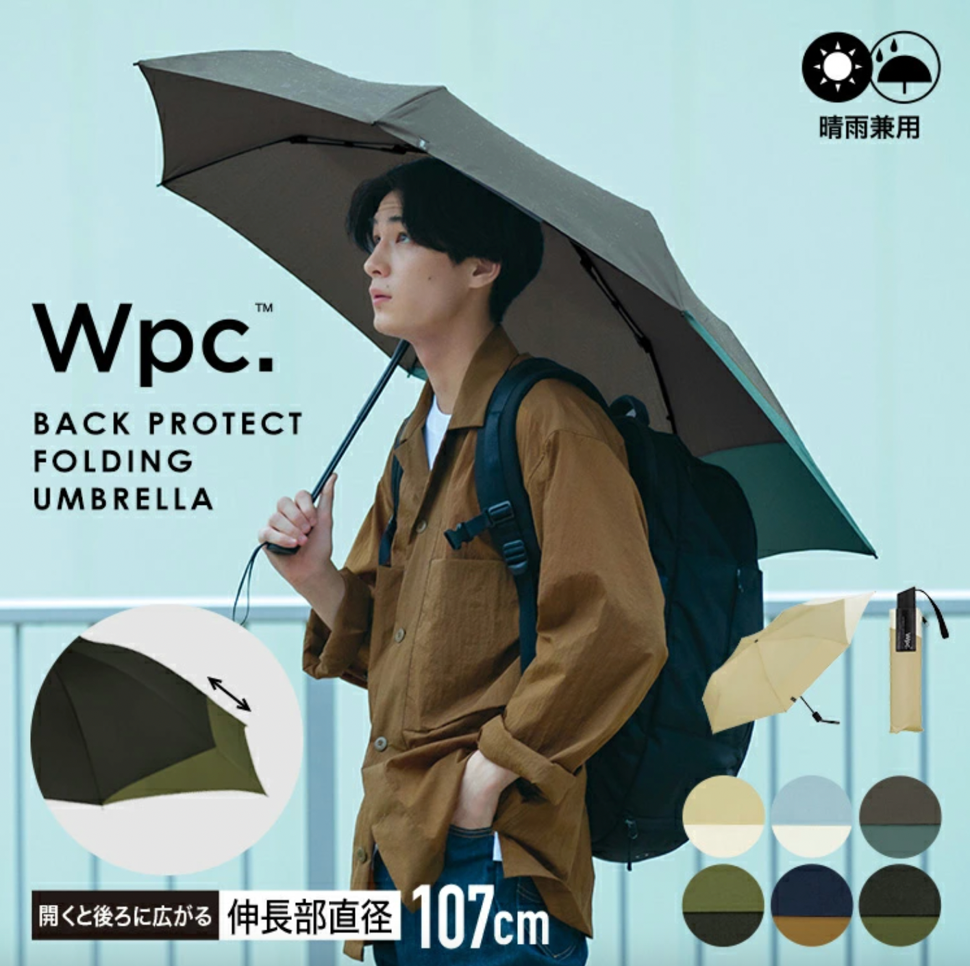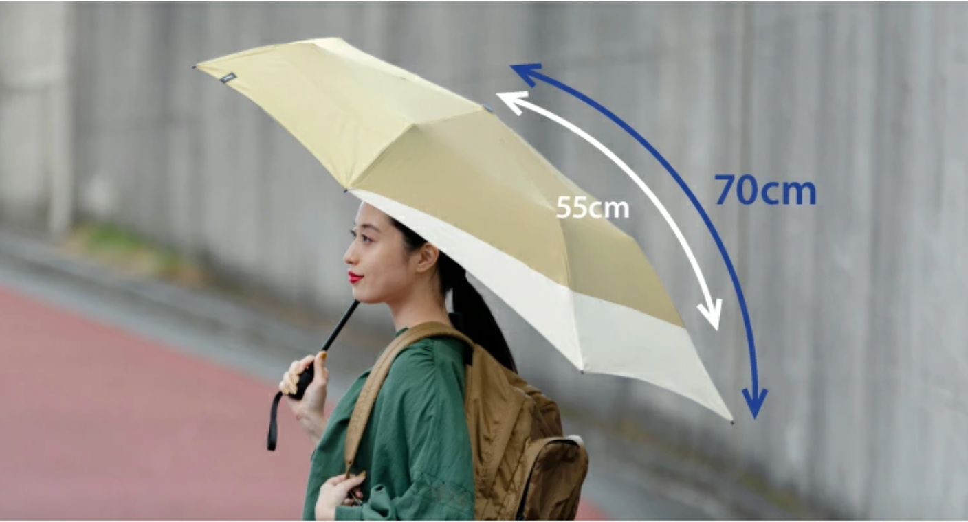 Keeping its compactness when folded, it has a special structure in which a part of the ribs stretches backward when the umbrella is opened to protect the backpack you carry on your back from the rain.The storage bag has a zipper for smooth removal.