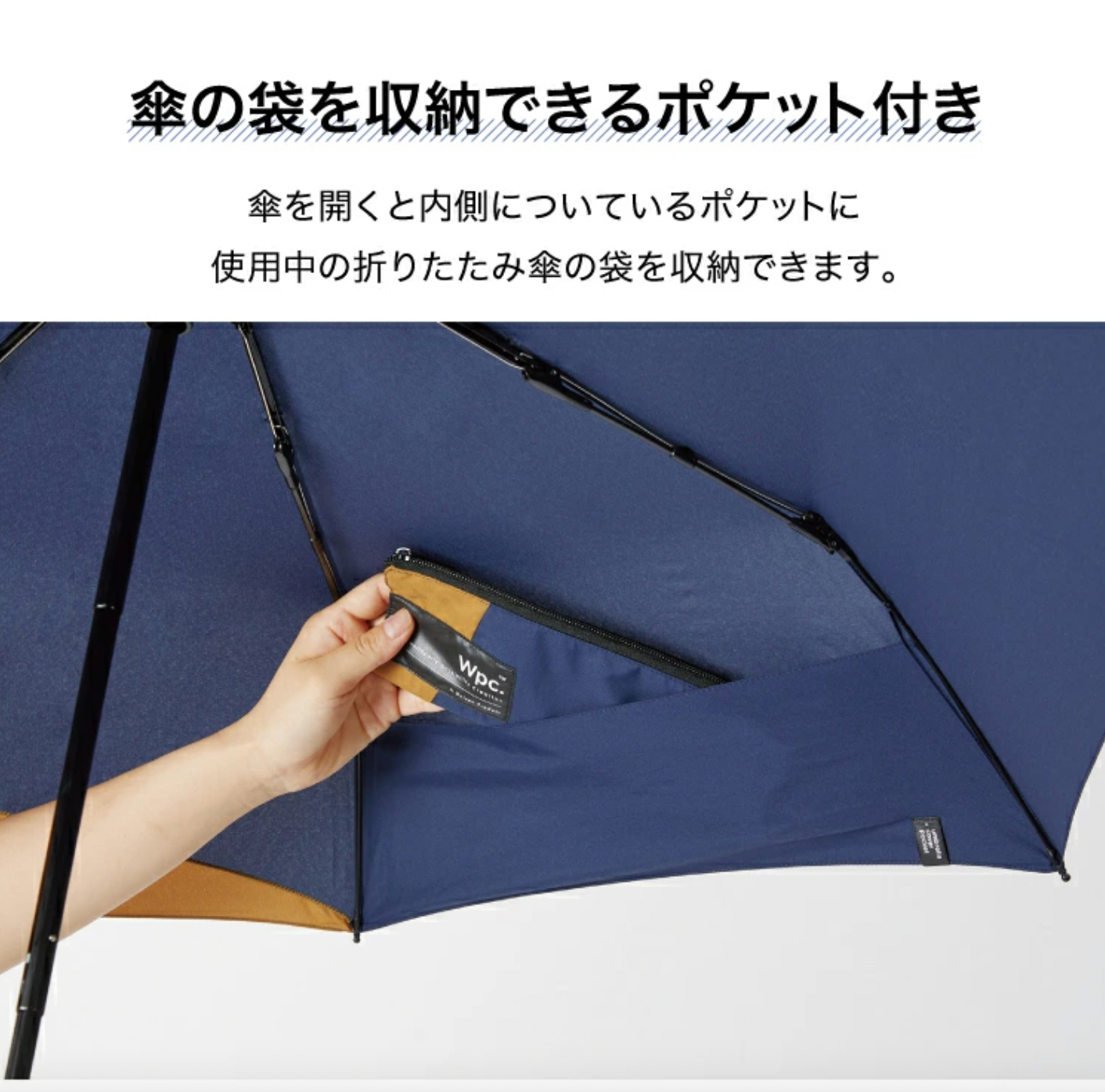 In addition, you can store the umbrella bag in use in the pocket on the inside of the umbrella to prevent it from being lost.