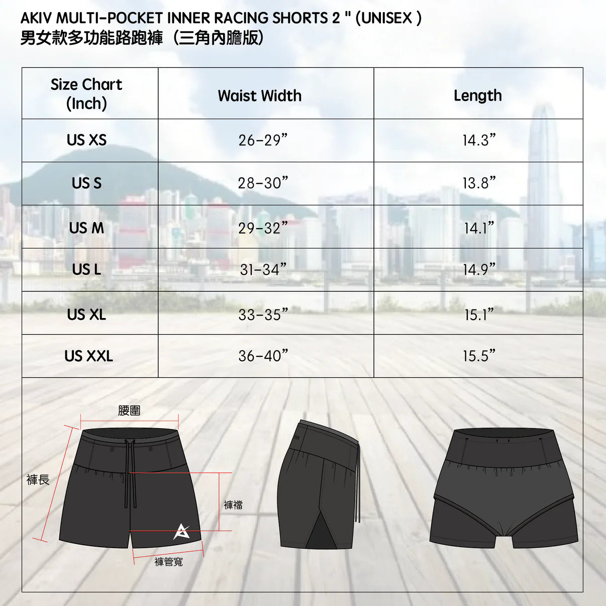 AKIV Multi Pocket Inner Racing Running Shorts 2'' (Unisex)