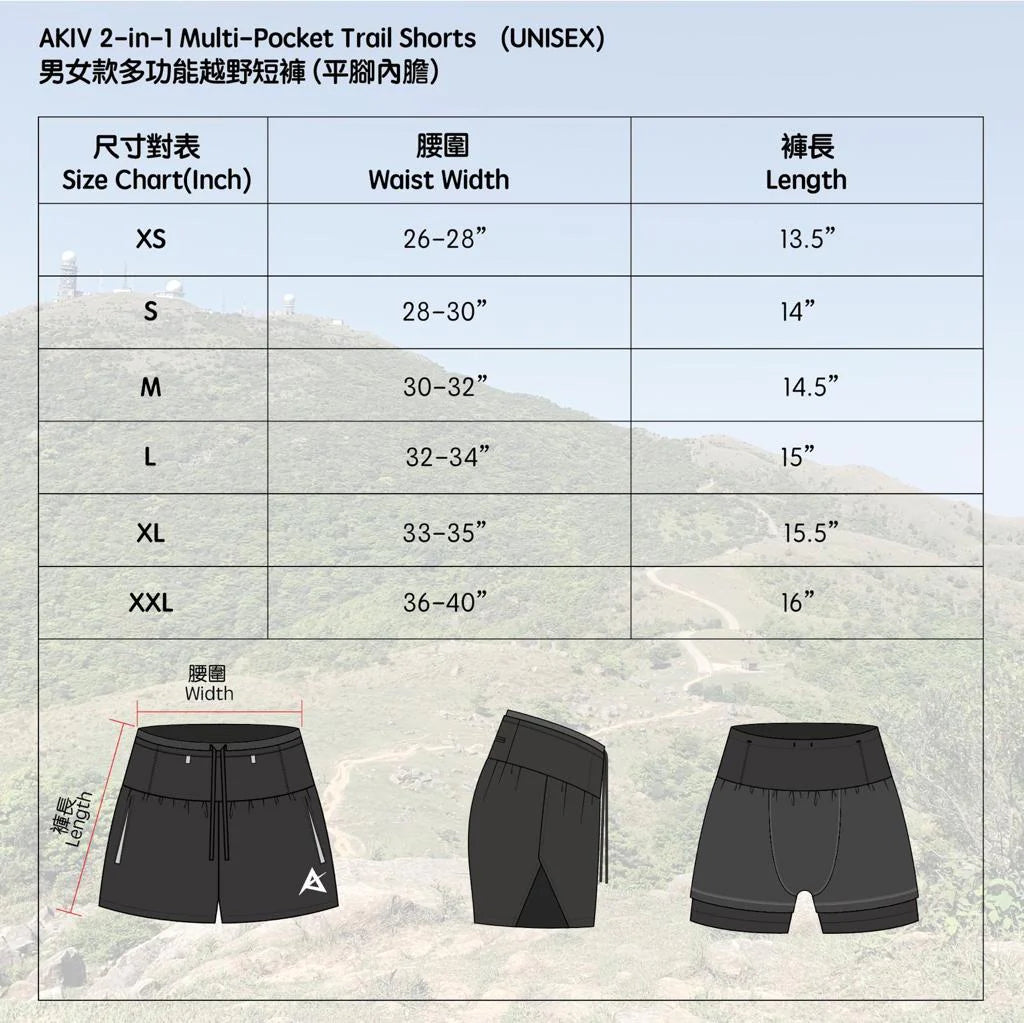 AKIV 2 in 1 Multi Pocket Tights Trail (Unisex) Shorts
