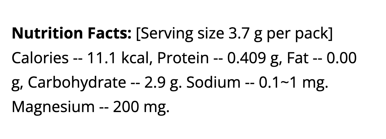 Nutrition Facts: [Serving size 3.7 g per pack]