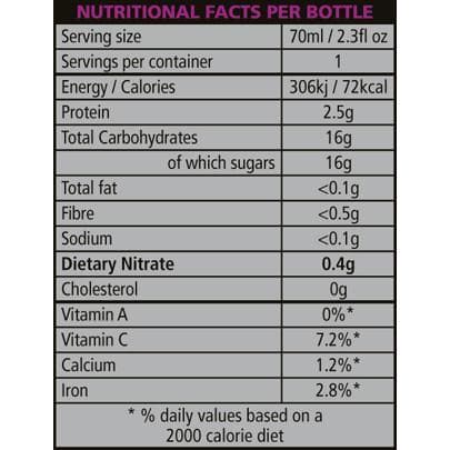 - Only ingredients are concentrated beetroot juice (98%) and lemon juice (2%)