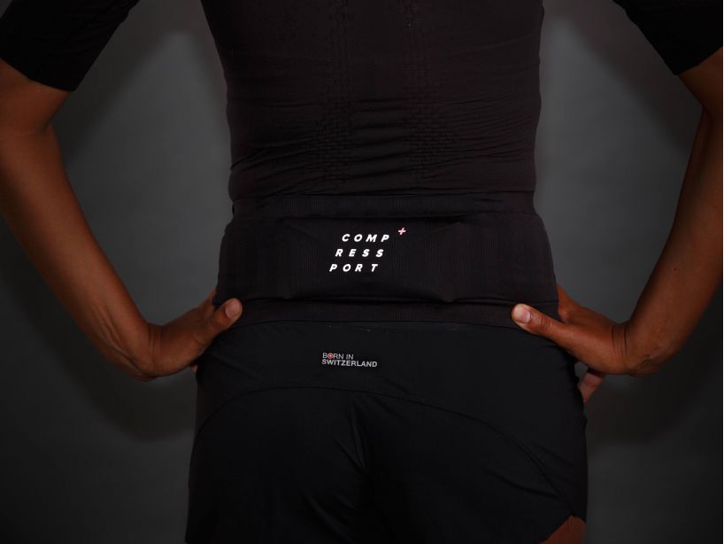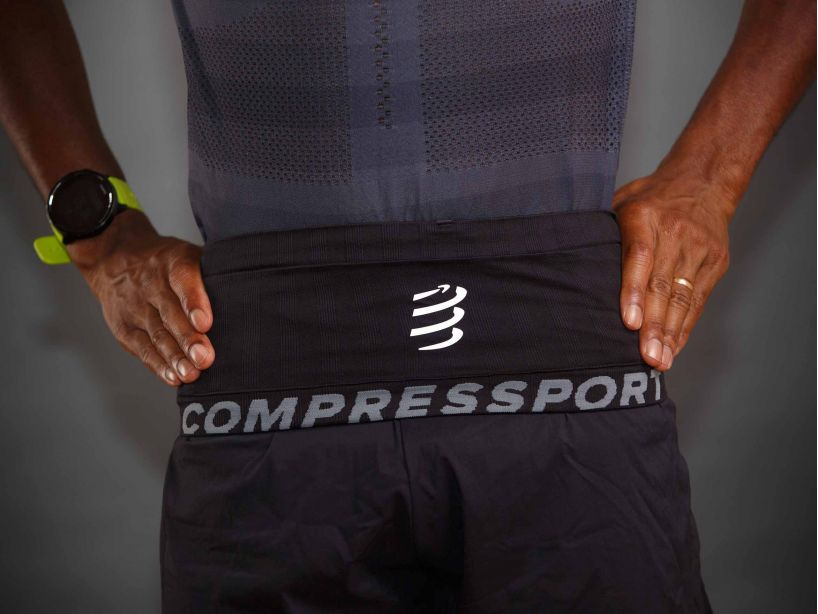 Ergonomic, no-bounce black running belt to carry all essentials, with reflective strips for safer training in dark conditions